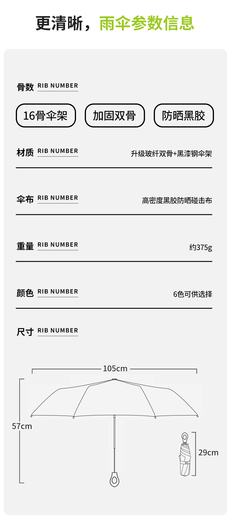 【布料】:190T黑胶布